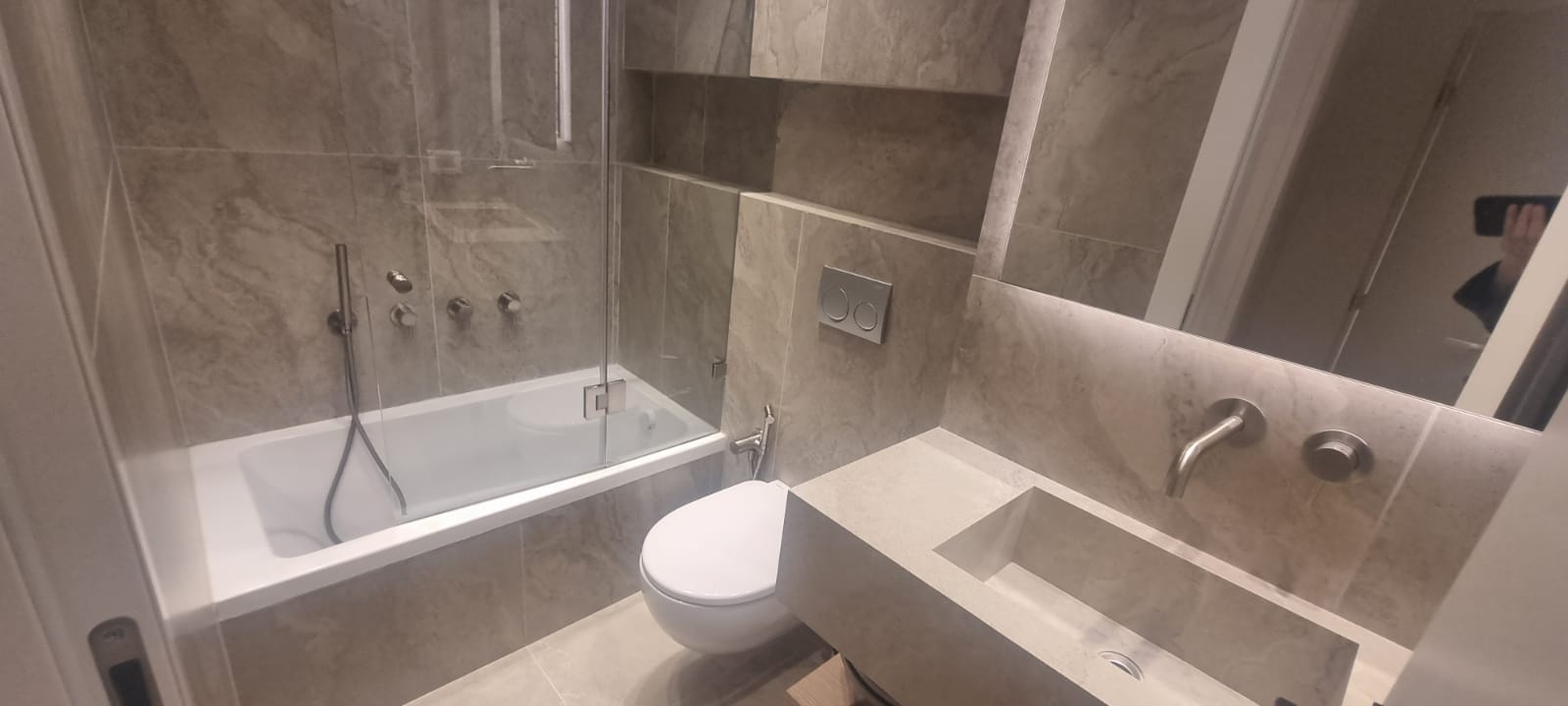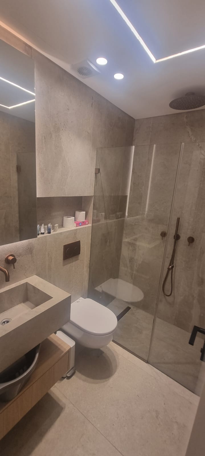 2 שירותים 1 ביחידת הורים עם מקלחת 1 בדירה עם אמבטיה