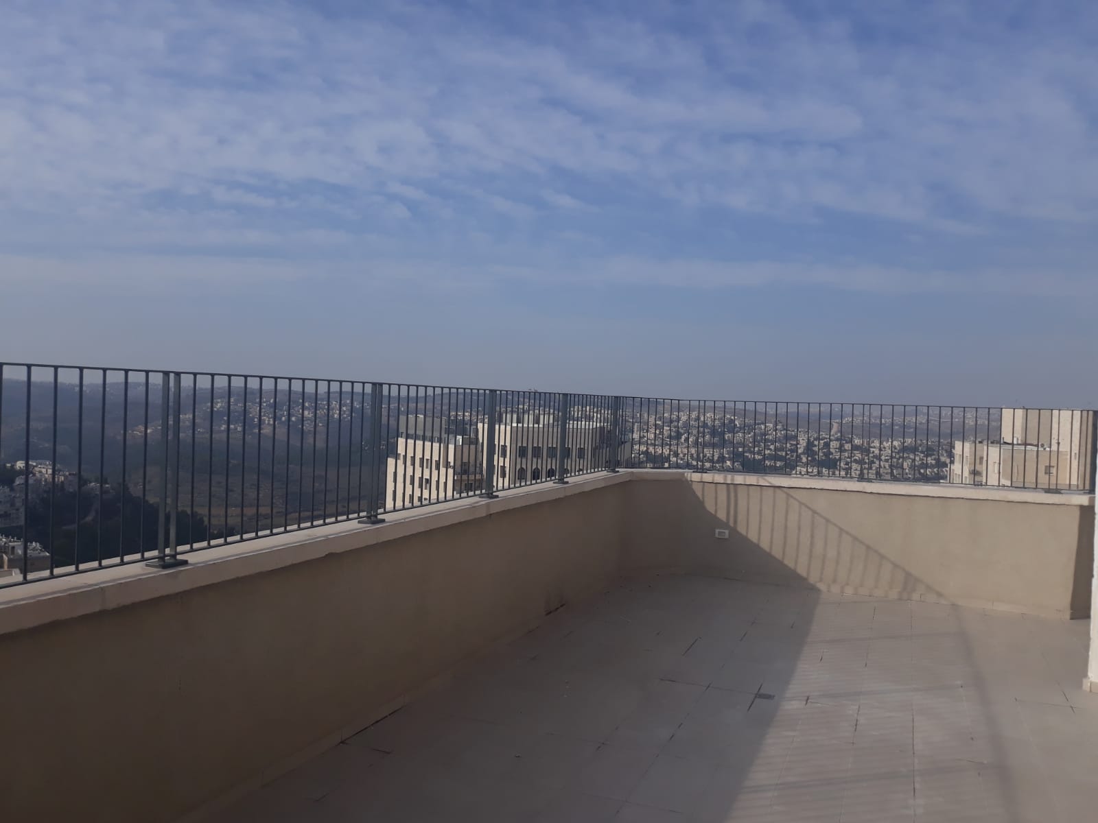 Huge porch off the dining room with magnificent view of Jerusalem Heights! Additional porch on the rooftop which belongs to the apartment.