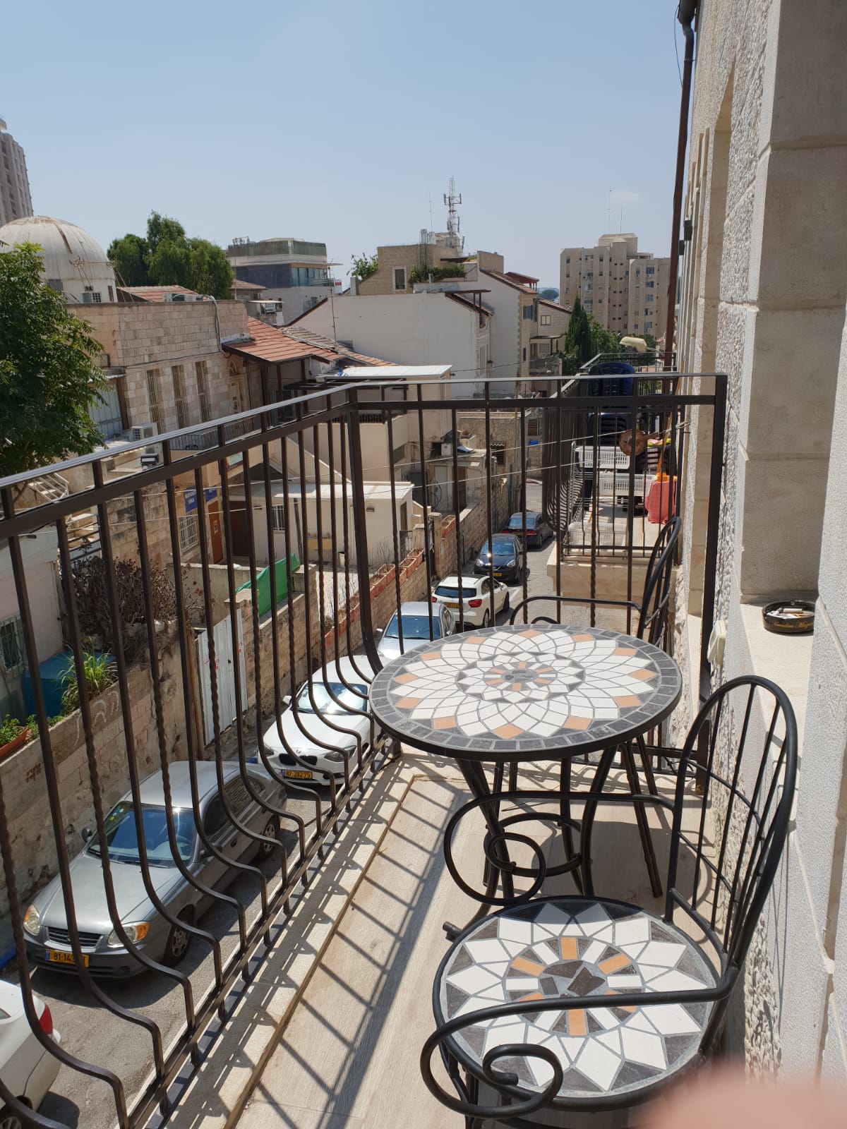 Great location! Just a few minutes walk to the colorful Shuk Machane Yehuda and bustling Jaffo streets offering tens of restaurants, cafés, galleries, mini-markets and night entertainment, within walking distance of the main Jerusalem synagogue, historical sites and only a 15 minute walk from the Old City.